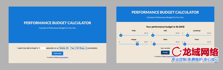 • 如上所述,Jonathan Fielding的效果预算计算器可以帮助您根据目标带宽和下载时间来规划适当的页面权重预算。超级好用!